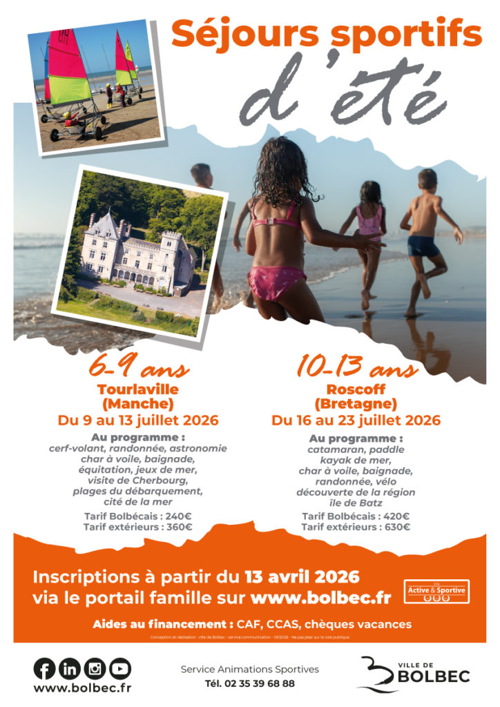 Cet été, la Ville de Bolbec propose aux jeunes deux séjours sportifs inoubliables entre mer, nature et activités fun !
