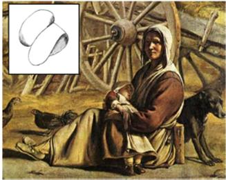 En 1787 à Bolbec, un autre inventaire permet de remarquer l’enrichissement du bonnet. Au décès de Pierre GILLES, imprimeur (sur indiennes) et marchand, la visite de la boutique montre les produits de l’industrie de la veuve, lingère de profession : « 23 bonnets en pièces à paillettes, fond argent, 10 bonnets à femme différentes espèces et dessins. La veuve possède personnellement 2 bonnets fond argent, un à bord d’or, l’autre d’argent à paillettes, un bonnet noir sur lequel est montée une coiffe, 14 coiffes unies, 26 béguins (coiffe qui s’attache sous le menton avec une bride) ».